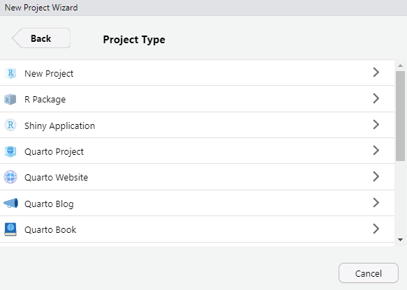 R project or Quarto project)